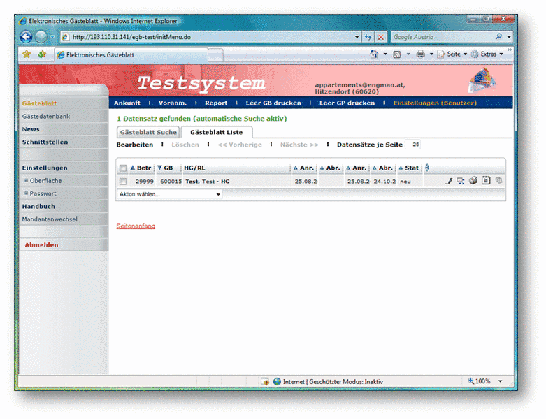 - Gästeblatt: Anlegen und Suchen von Gästeblättern