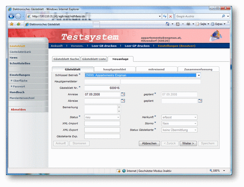 Damit sich alle Gemeinden und Betriebe mit dem e-Gästeblatt vertraut machen können, stellen wir allen Anwendern ein Testsystem zur Verfügung, in welchem Funktionen erprobt, Abläufe simuliert oder Schulungen/Vorführungen abgehalten werden können.